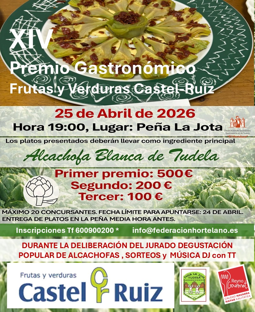 El XIV Premio Gastronómico Frutas y Verduras Castel Ruiz se consolida un año más como una de las citas culinarias más emblemáticas de Tudela, reuniendo tradición, producto local y creatividad gastronómica. La edición de 2026 se celebrará el 25 de abril a las 19:00 horas en la Peña La Jota, un espacio histórico para la cultura popular de la ciudad.